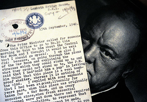 En la carta, escrita por el alto funcionario Patrick Duff al Secretario del Gabinete, Sir Edward Puentes, se describe la conmoción de Churchill por la debilidad de las habitaciones utilizadas por el gabinete de guerra y militares.
