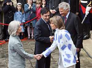 Fillon y su esposa y madre de sus cinco hijos, la británica Penelope, llegaron a pie y bajo una fina lluvia a Matignon, donde fueron recibidos por el matrimonio Villepin, que se mostró muy caluroso. Muy comentada fue la chaqueta blanca de la mujer de Villepin, en la que había recortes azules en los que se podía leer "adiós, bye bye, ciao ciao, salut". Para facilitar la transición, Villepin, muy aplaudido por el personal de Matignon, entregó a su sucesor un documento de "trasmisión republicana", una compilación de notas ministeriales. Ironías del destino, Villepin dio las llaves de Matignon a Fillon, con quien no contó cuando tomó las riendas del Gobierno el 31 de mayo de 2005 tras el 'no' de los franceses en el referéndum de la Constitución europea. Despechado, Fillon, que había sido ministro de Asuntos Sociales y después de Educación con el antecesor de Villepin, Jean-Pierre Raffarin, ofreció entonces públicamente sus servicios a Sarkozy.